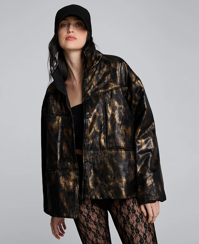 Yumi Women's Animal Reversible Cropped Quilted Jacket