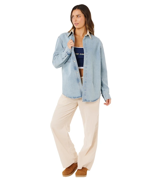 Blue Revival Women's Cropped Denim Double-Breasted Trench Jacket