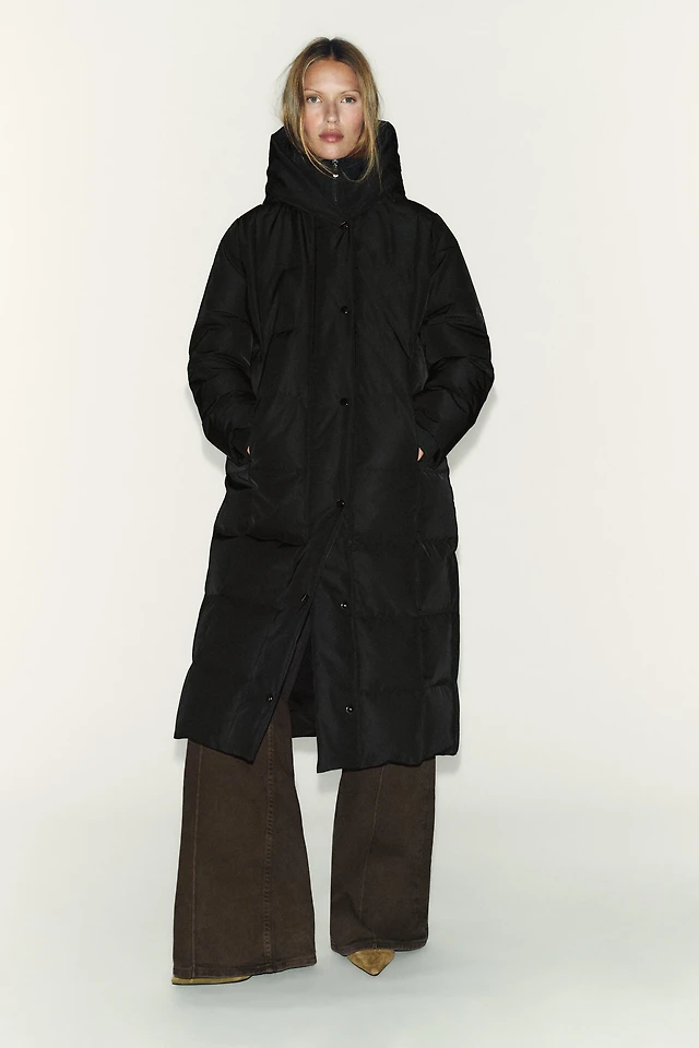 LONG WATER REPELLENT WINDPROOF HOODED DOWN JACKET