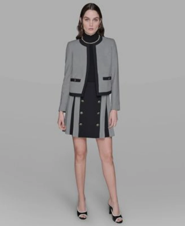 Karl Lagerfeld Paris Womens Cropped Long Sleeve Jacket V Neck Blouse Mid Rise Flared Pants