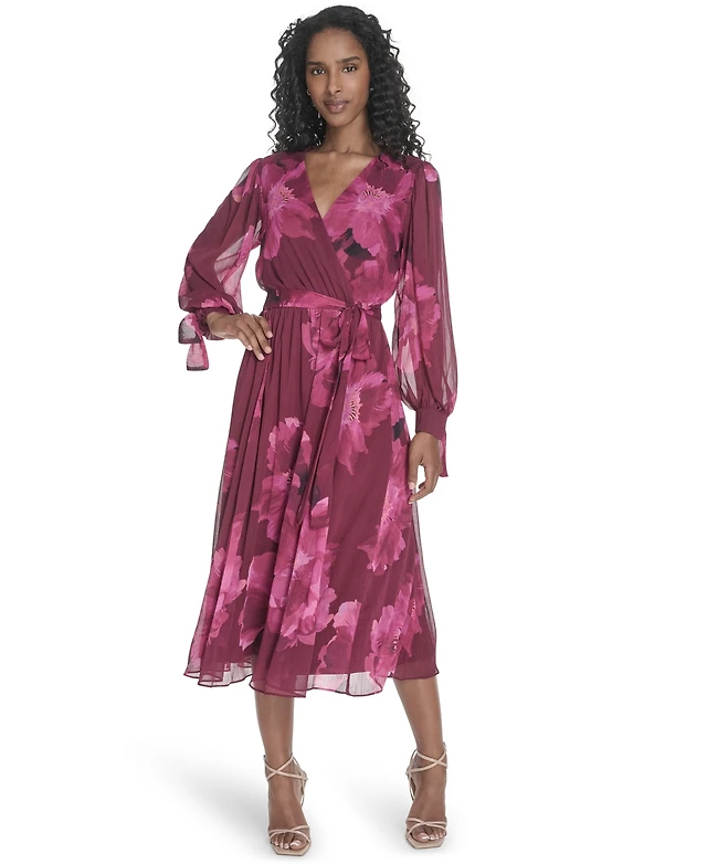 Donna Karan New York Women's Foil Mesh Belted Midi Dress