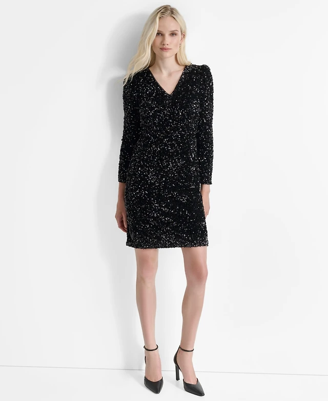 Donna Karan New York Petite Long Sleeve Velvet Dress
