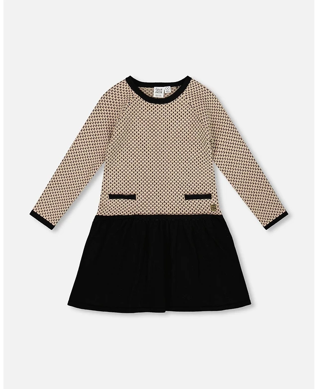 Deux par Girl Knitted Dress with Norvegian Jacquard Dusty Pink