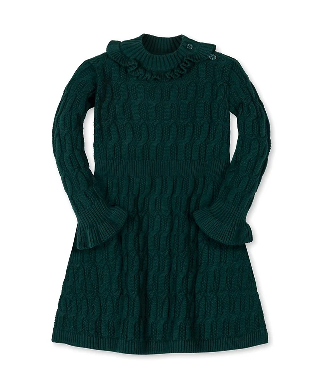 Hope & Henry Big Girls Organic Mock Neck Ruffle Cuff Cable Sweater Dress