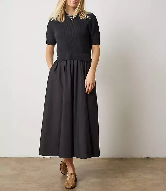 Eloquii Women's Plus Size Mixed Stripe Ribbed Dress