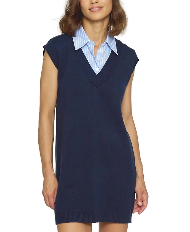 Eloquii Women's Plus Mock Neck Rib Button Dress