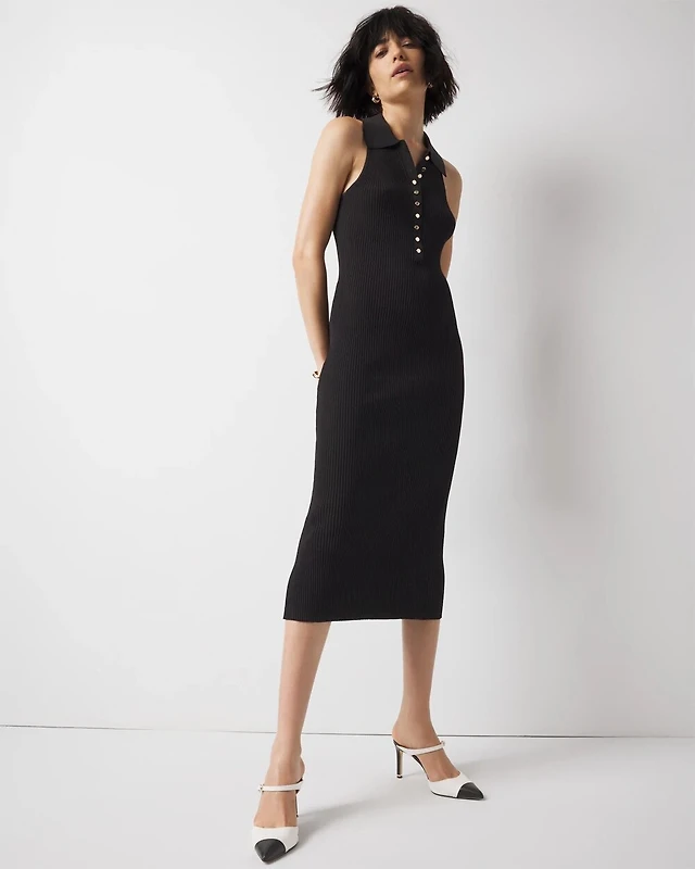 Pointelle Polo Maxi Sweater Dress