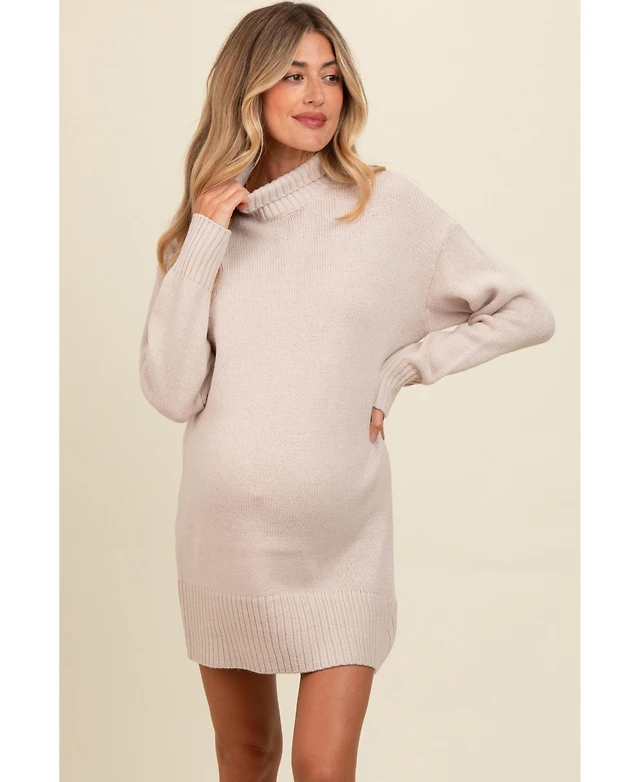 Pinkblush Maternity Camel Turtleneck Side Slit Midi Sweater Dress