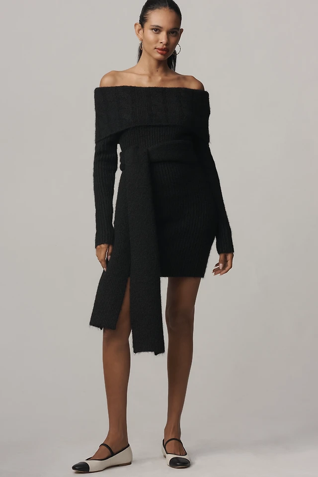 By Anthropologie Off-Shoulder Ruched Sweater Dress