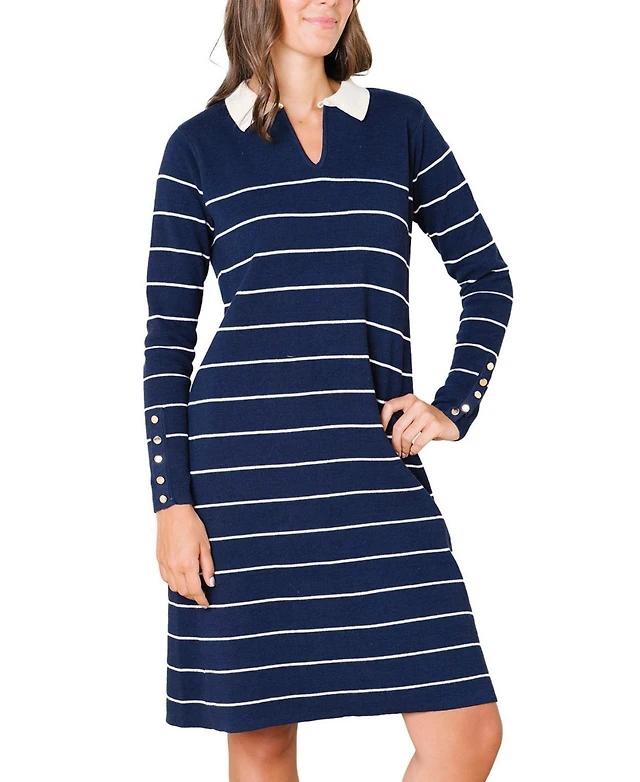Marion Maternity Knee Length Striped Cotton Knit Nursing Sweater Dress