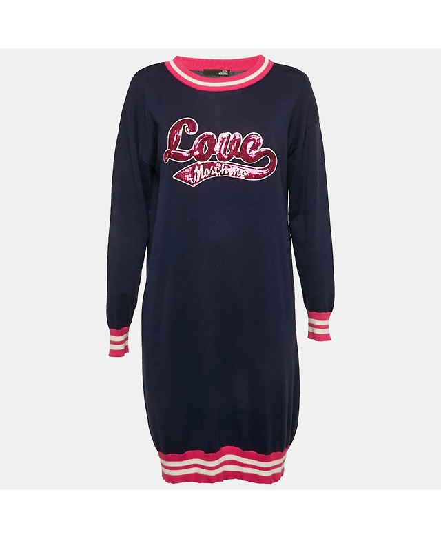 Pre-Owned Love Moschino Women's Navy Blue Sequin Embroidery Cotton Sweater Dress