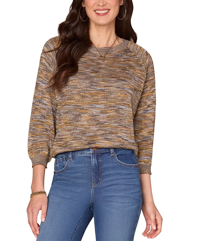 Democracy Women's Space Dye Round-Neck Blouson-Sleeve Sweater