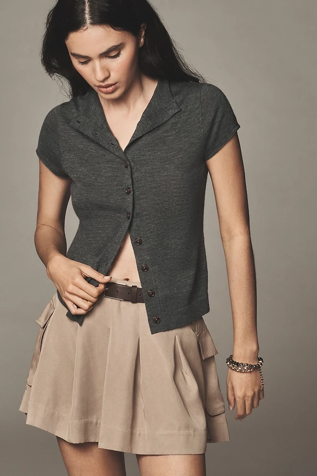 Steve Madden Women's Janae Short Sleeve Cardigan Sweater