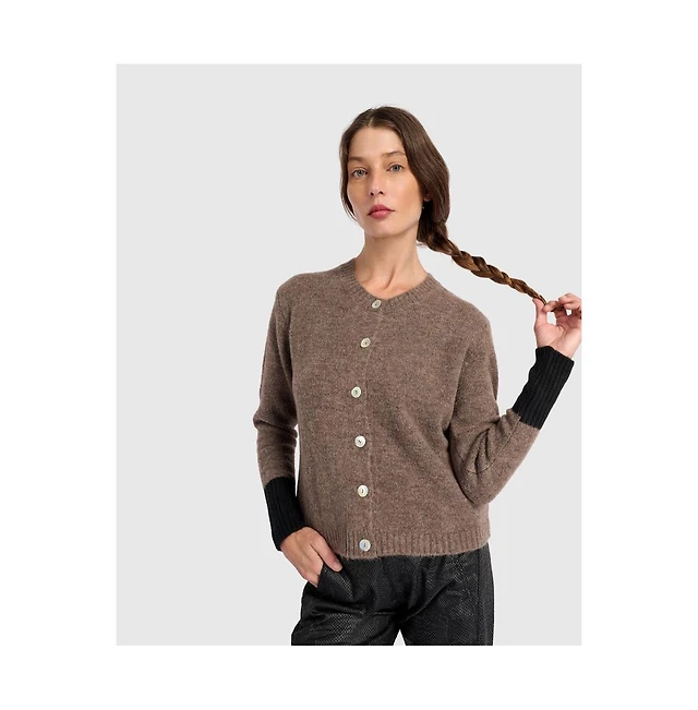 Modenaire Women's Textured Knit Cardigan with Button Front and Patch Pockets