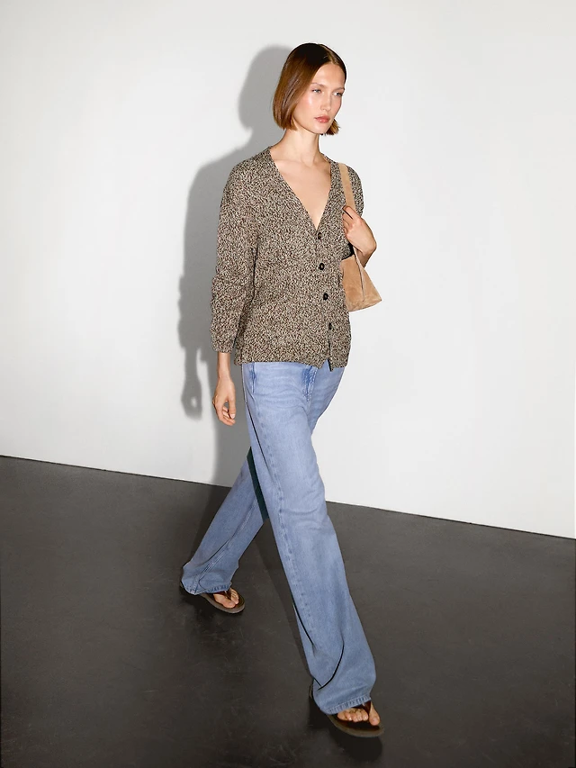 Dip Dye Gradient Ribbed V-Neck Cardigan