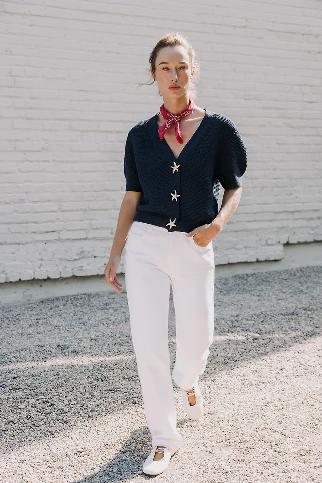 SHORT SLEEVE STITCHED KNIT CARDIGAN