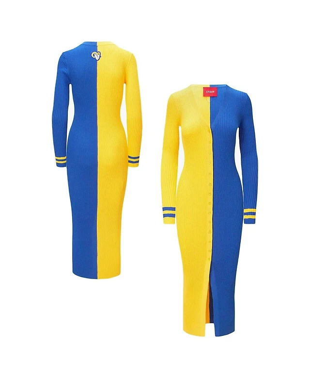 Women's Staud Gold, Royal Los Angeles Rams Shoko Knit Button-Up Sweater Dress