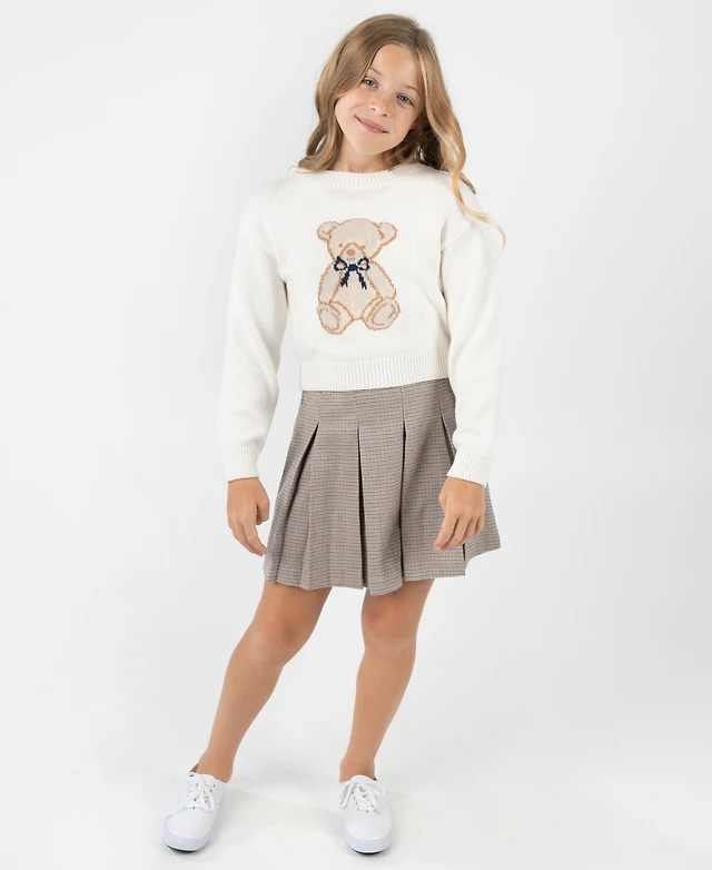 Collared Patterned Knit Short Puff Sleeve Sweater