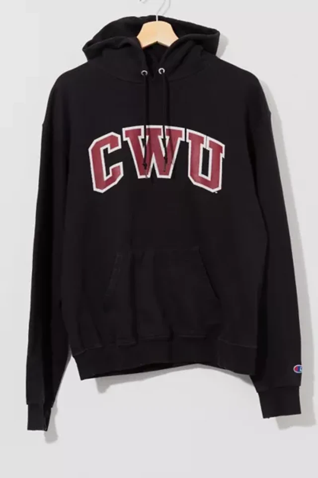 Vintage Y2K Distressed Champion CWU Black Spell Out Hoodie Sweatshirt