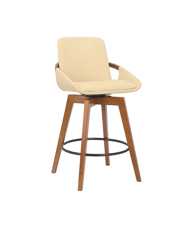 Baylor Swivel Wood Bar or Counter Stool Faux Leather