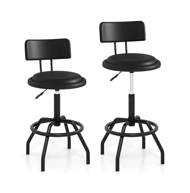 Costway Adjustable Armless Bar Stool Full Back Swivel Kitchen Counter Bar Chair Pu Leather