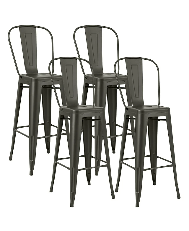 Slickblue Outdoor Folding Bar Height Stool Set of 4 with Metal Frame and Footrest