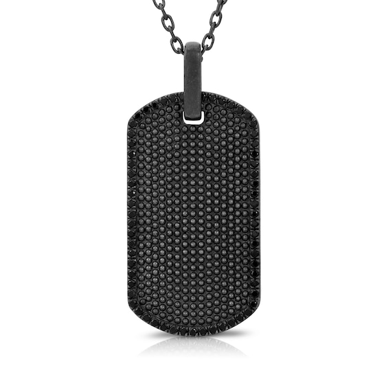 1/2 CT. T.w. Black Diamond Edge Beaded Dog Tag Pendant in Oxidized Black Sterling Silver - 24"