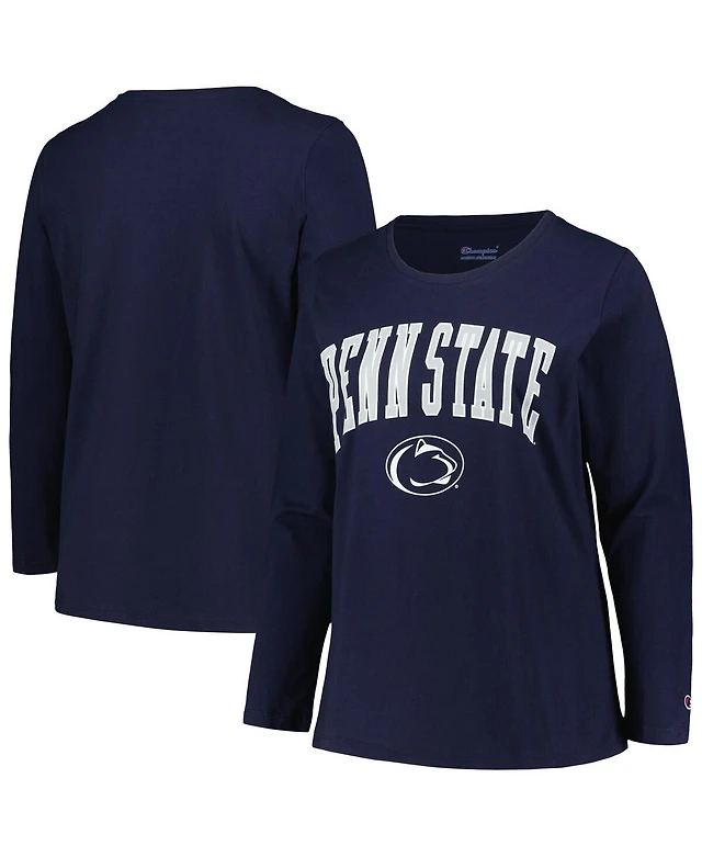 Women's Profile Navy Penn State Nittany Lions Plus Size Arch Over Logo Scoop Neck Long Sleeve T-shirt