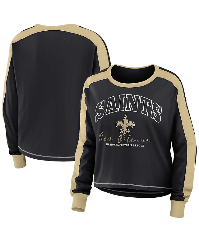 Women's Wear by Erin Andrews Black, Gold New Orleans Saints Color Block Modest Crop Long Sleeve T-shirt