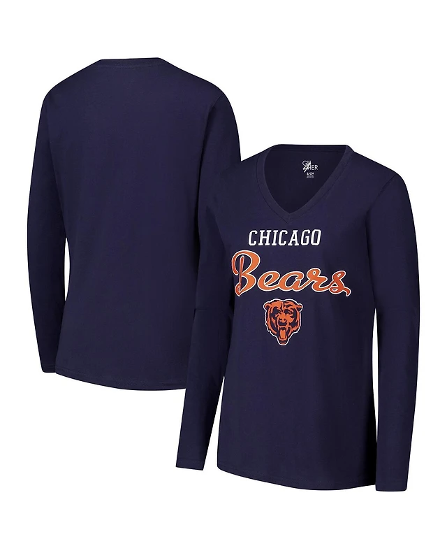 G-iii 4Her by Carl Banks Women's Navy Chicago Bears Post Season Long Sleeve V-Neck T-Shirt