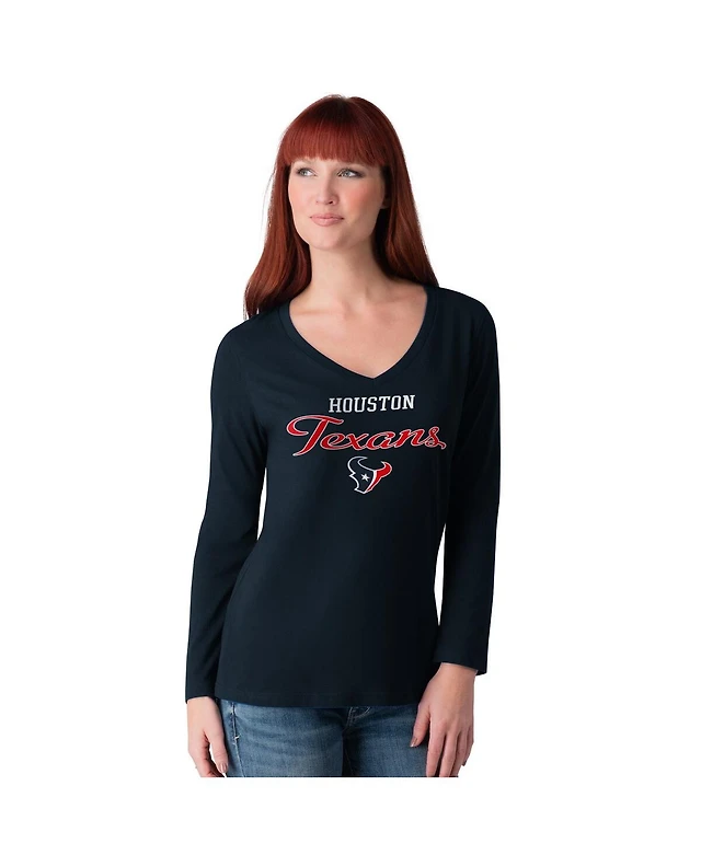 G-iii 4Her by Carl Banks Women's Navy Houston Texans Post Season Long Sleeve V-Neck T-Shirt