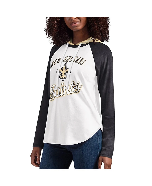 G-iii 4Her by Carl Banks Women's White New Orleans Saints Mvp Raglan Hooded Long Sleeve T-Shirt