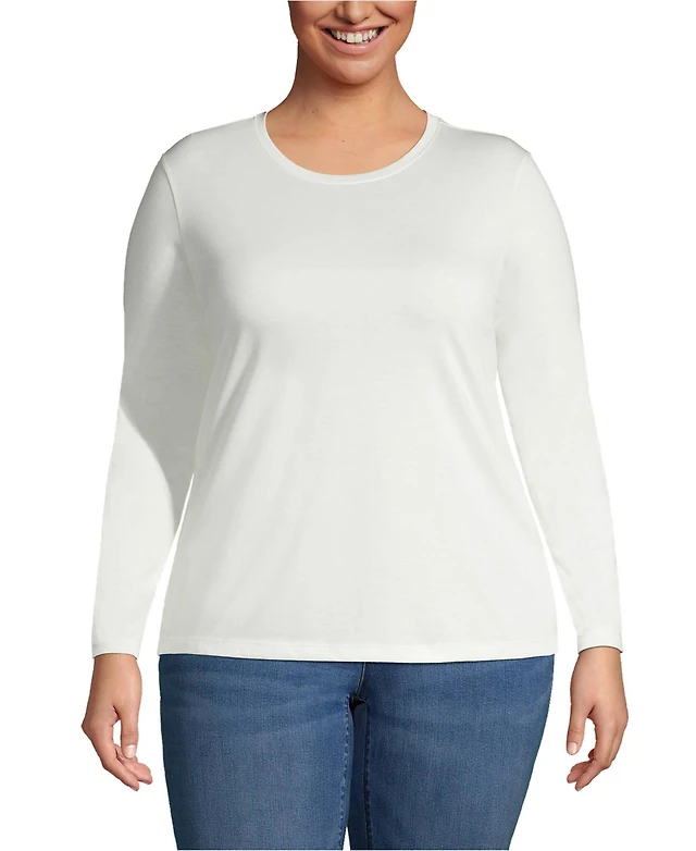 Lands' End Relaxed Supima Cotton Long Sleeve Crew Neck T-Shirt, Regular & Petite
