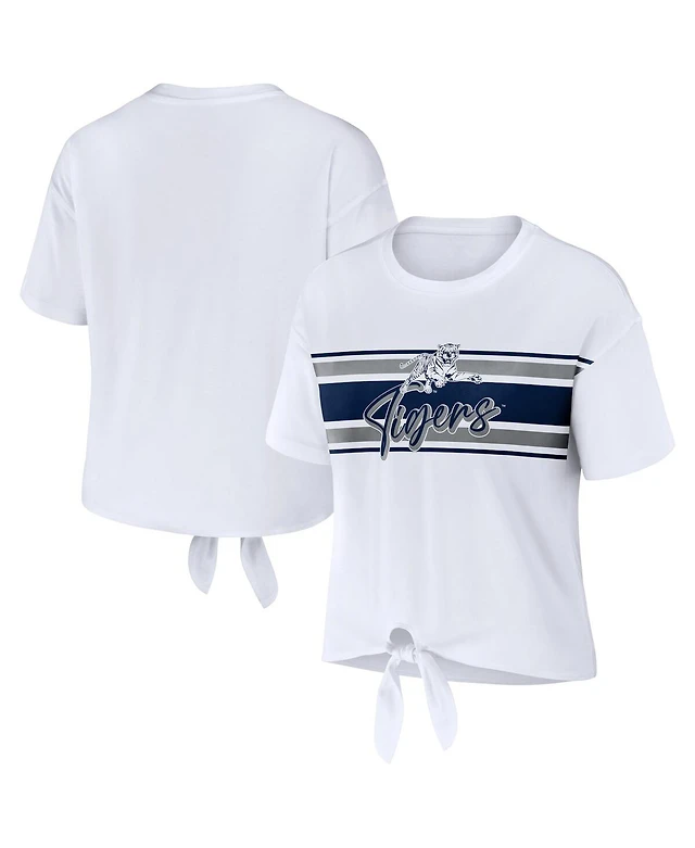 Women's Wear by Erin Andrews White West Virginia Mountaineers Striped Front Knot Cropped T-shirt