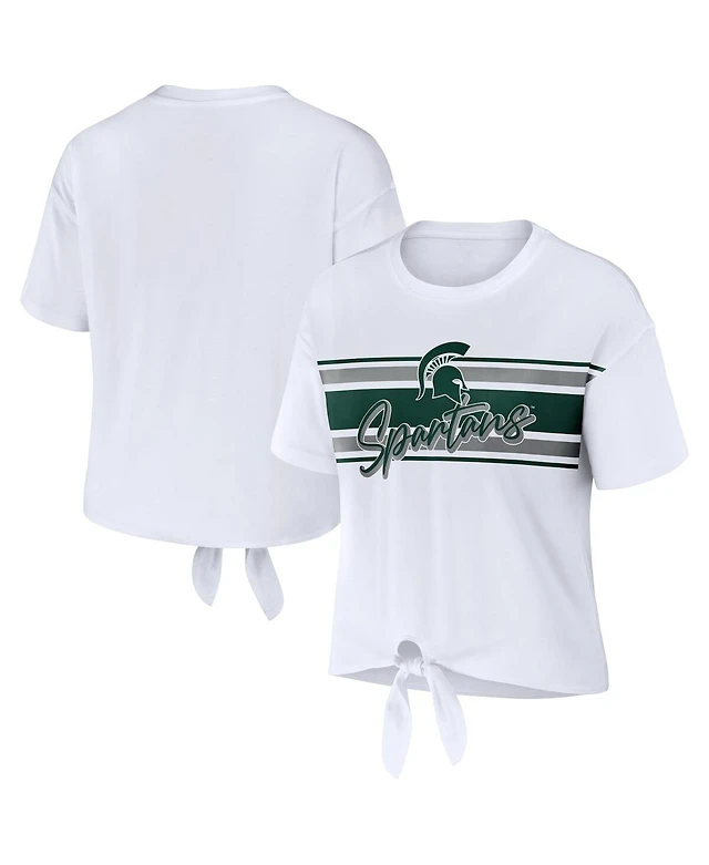 Women's Wear by Erin Andrews White Michigan State Spartans Striped Front Knot Cropped T-shirt