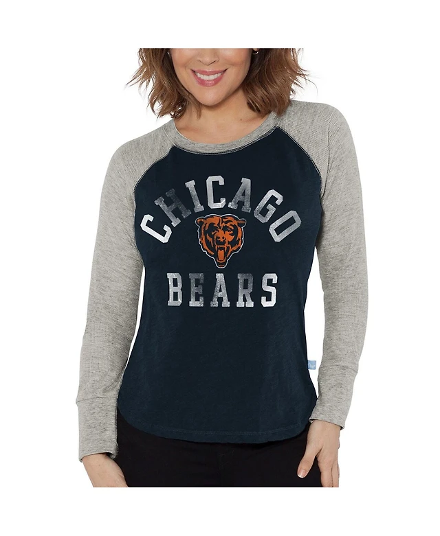 Women's G-iii 4Her by Carl Banks Navy, Heather Gray Distressed Chicago Bears Waffle Knit Raglan Long Sleeve T-shirt
