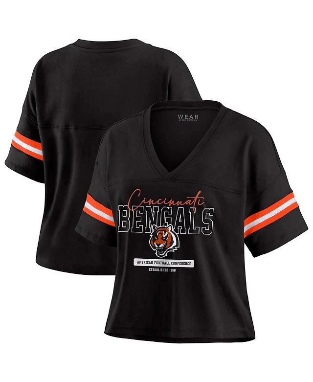 Wear by Erin Andrews Women's Black Cincinnati Bengals Color Block Boxy Modest Crop V-Neck T-Shirt