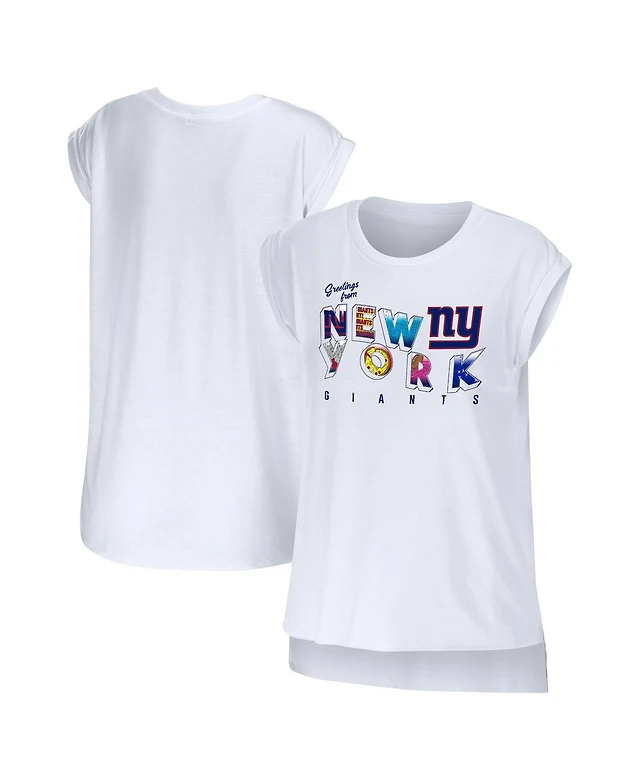 Women's Wear by Erin Andrews White New York Giants Greetings From Muscle T-shirt