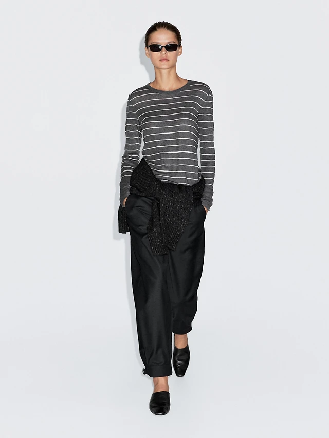 Ann Taylor Petite Weekend Collection Striped Twist T-Shirt Size 2XS Night Sky Women's