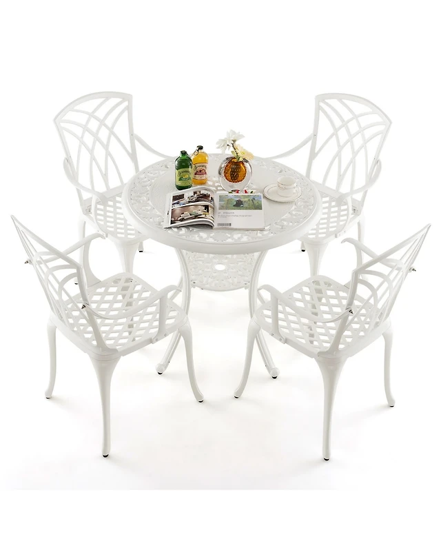 Gymax 5 Pieces All-Weather Outdoor Cast Aluminum Dining Set Round Dining Table