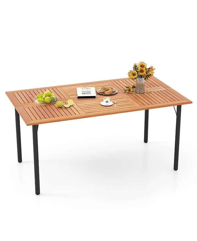 Gymax Rectangular Acacia Wood Dining Table w/ 1.9'' Umbrella Hole Patio