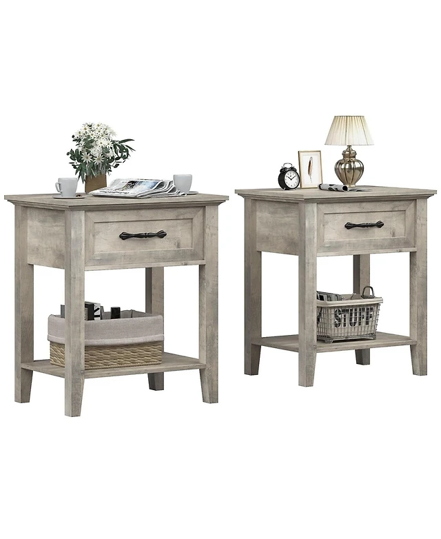 gaomon Square Nightstand, Bedside Table End Table for Bedroom Nursery Living Room, End Table with Storage Drawer, Easy Assembly, 2pcs
