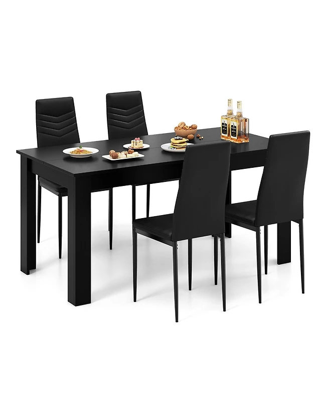 Streamdale Furniture Black Faux Wood Grain Mdf Dining Table Set with 4 Pu Chairs.