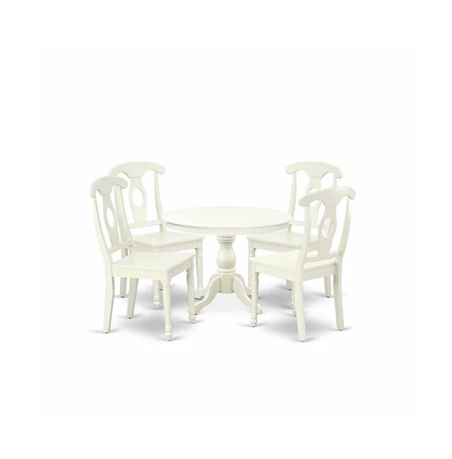 East West Furniture 5-Piece Fashionable Dining Room Set a Good Linen White Wood Table Top and 4 Stunning Linen Fabric Kitchen Chairs with Stylish Chai