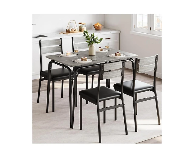 East West Furniture 5-Pc Dinette Room Set - 4 Parson Dining Room Chairs and 1 Modern Rectangular Cement Dining Table with High Roll Chair Back
