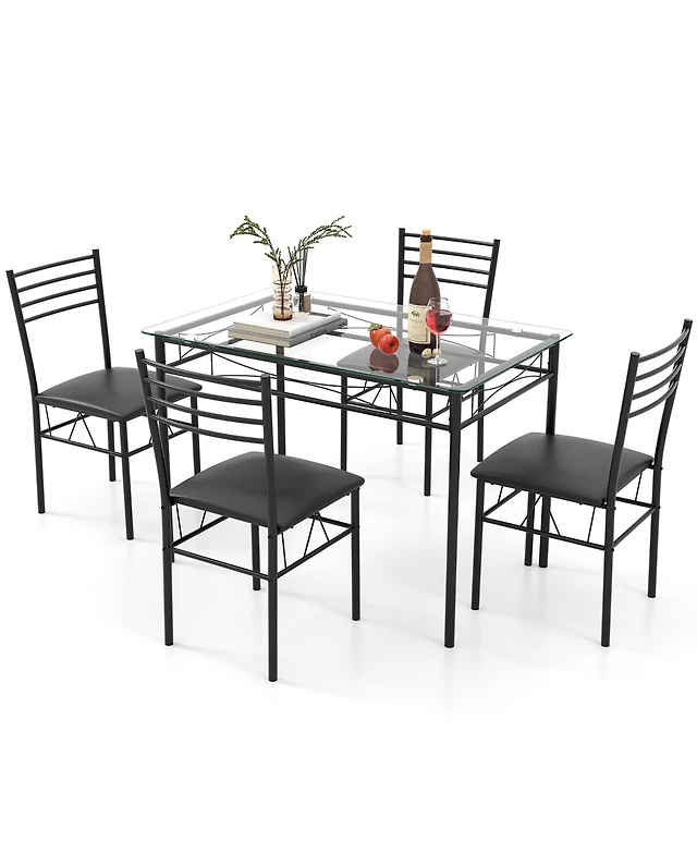 East West Furniture 5-Pc Dining Room Set - 4 dining room chairs and 1 Drops Leaf Kitchen Table - Black Finish