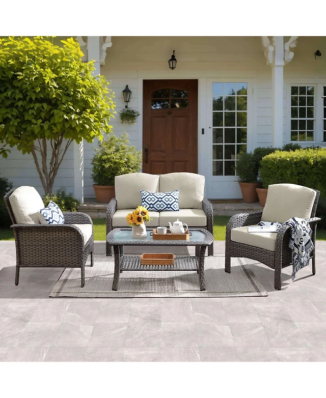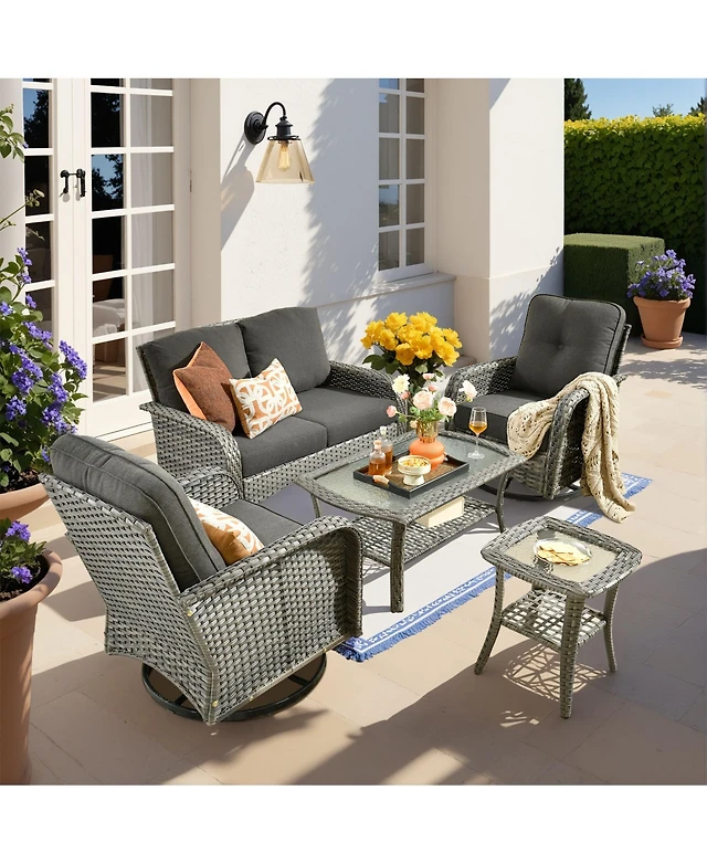 Xizzi 10 Piece Outdoor Patio Furniture with Swivel Rocking Chairs,All Weather Rattan Wicker Sectional Coversation Set Solar Coffee Table, Single