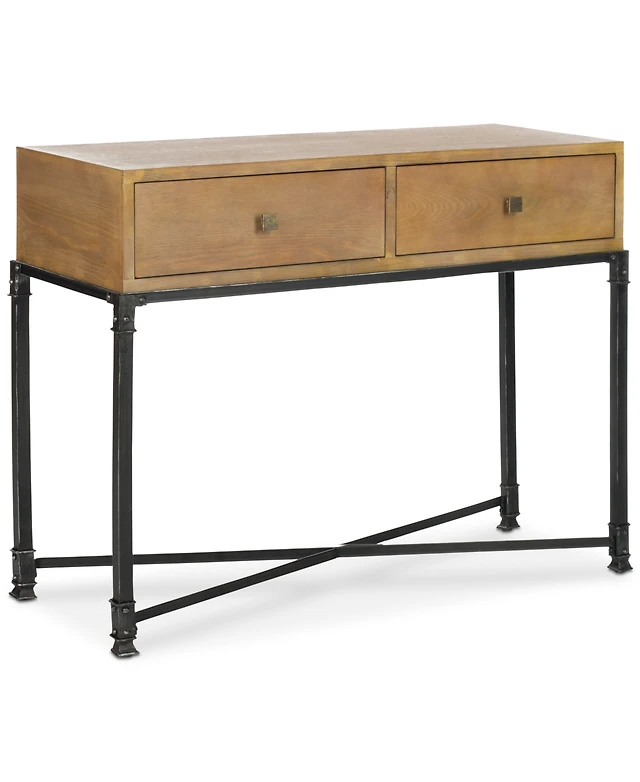 Sophie Mid Century Tempered Glass Desk with Natural Stained Acacia Wood Frame