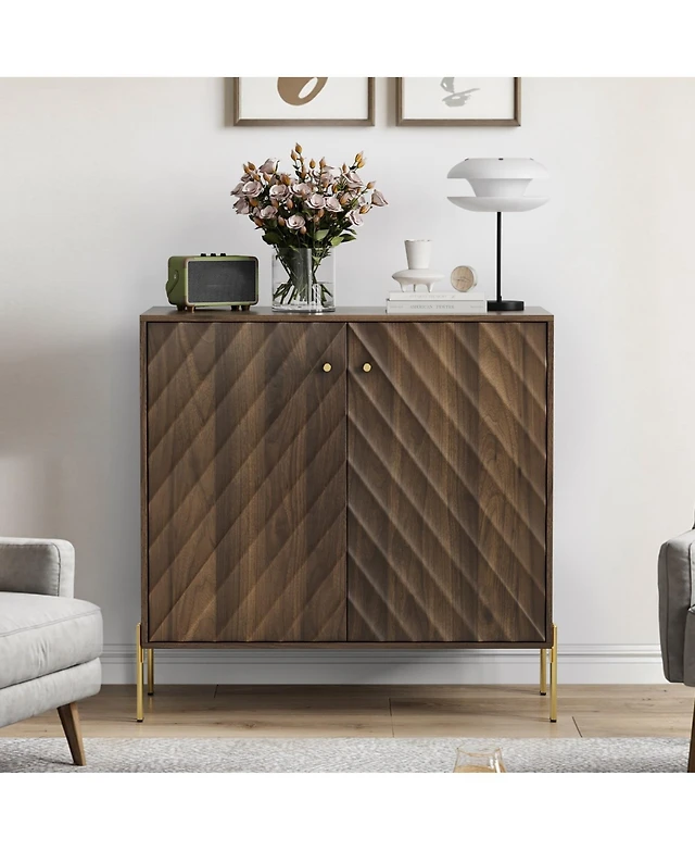 Streamdale Modern Sideboard with Wavy Texture, White Accent Cabinet with Door