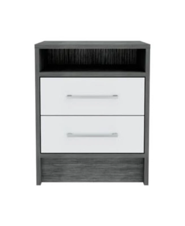 gaomon Modern Farmhouse Nightstand - Usb & Outlet Charging Station for Bedroom, 2 Drawer Industrial Bedside Table with Storage